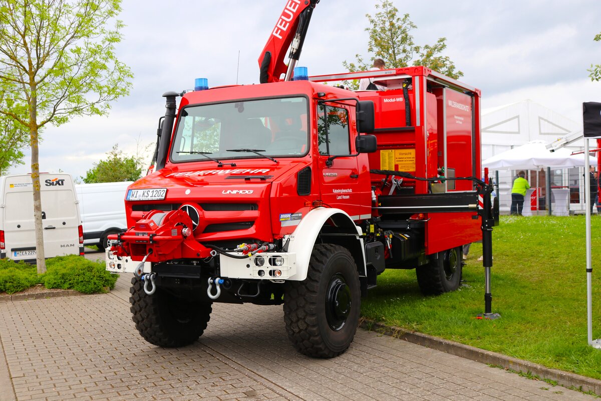 Katastrophenschutz Land Hessen Mercedes Benz Unimog U5023 GW-L Kats am 17.05.24 auf der Rettmobil in Fulda