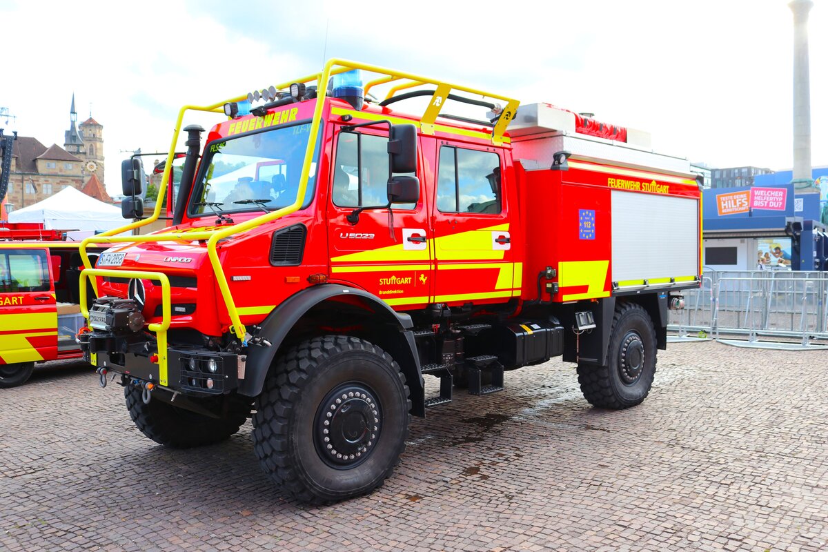 Feuerwehr Stuttgart Mercedes Benz Unimog U5023 TLF3000 am 07.07.24 beim Blaulichttag in Stuttgart