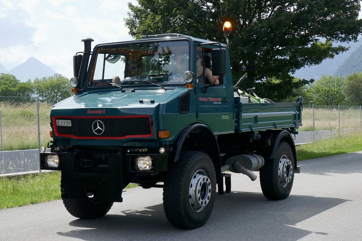 Ein Unimog von Gerber Transporte der am 28.6.24 zum Trucker Festival fährt in Bönigen.