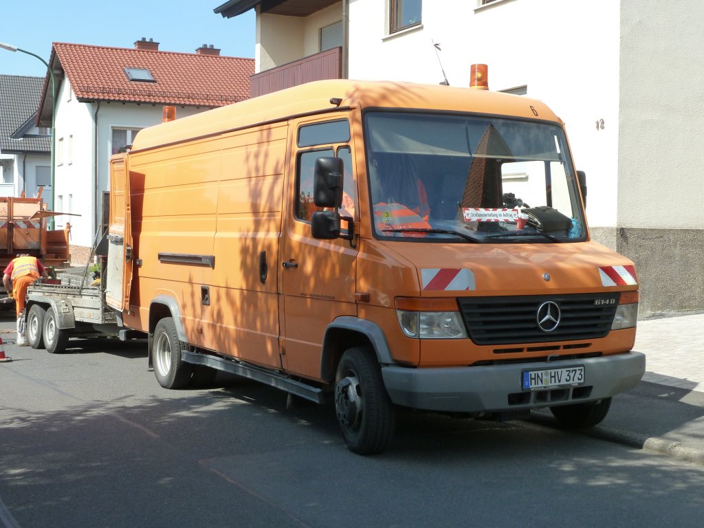 MB Vario 614 gesehen in 36100 Petersberg-Marbach. Die Firma wechselt im Ort die vorhandenen Kanaldeckel gegen ein Modell mit höherer Traglast aus. Mai 2011