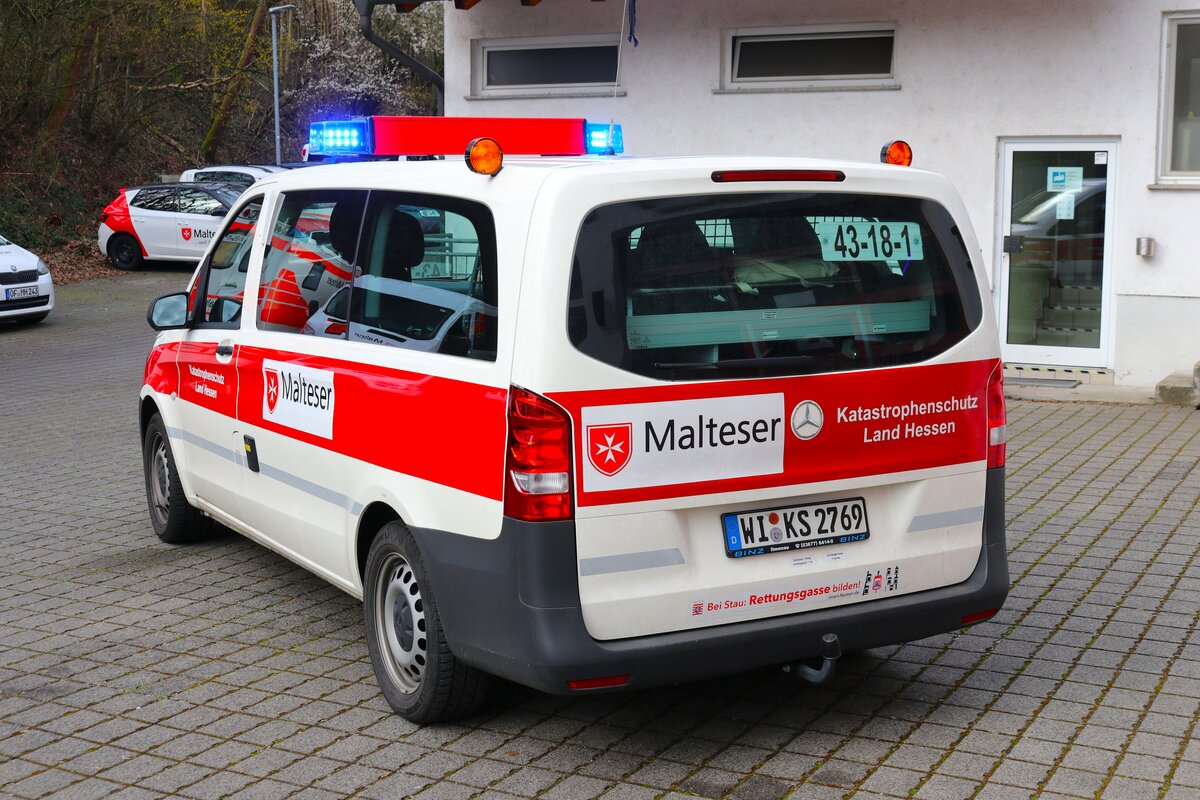 Malteser Hilfsdienst Stadt und Kreis Offenbach Mercedes Benz MTW Betreuung (Johannes Kreis Offenbach 43/18-1) am 02.03.24 bei einen Fototermin. Danke für das tolle Shooting