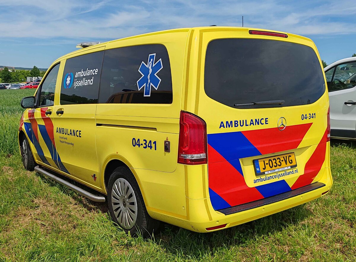 =MB Vito vom AMBULANCE ISSELLAND aus den Niederlanden, gesehen auf dem Parkgelände der Rettmobil 2024 in Fulda