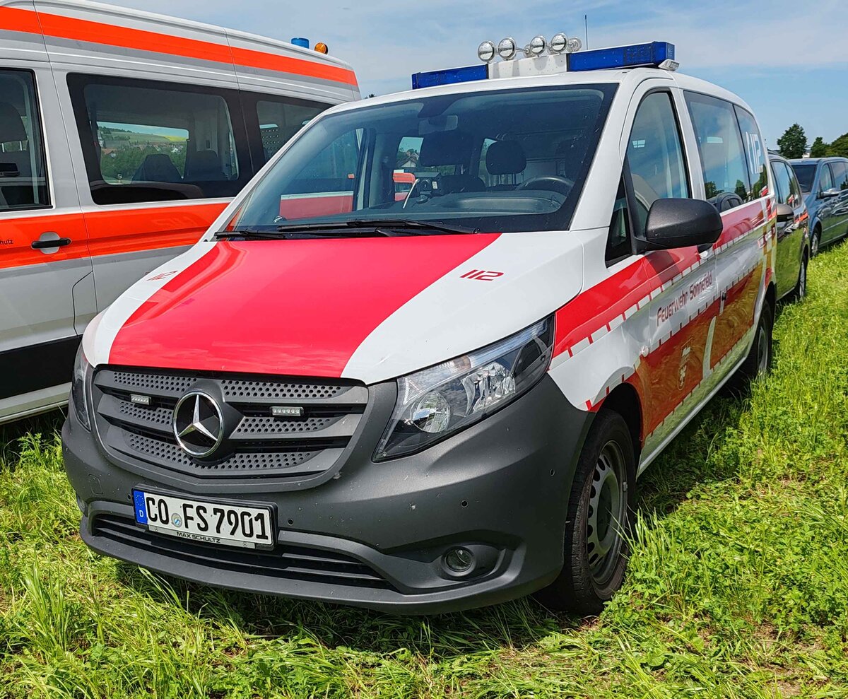=MB Vito der Feuerwehr SONNEBERG, gesehen im Mai 2024 auf dem Besucherparkplatz der RettMobil in Fulda