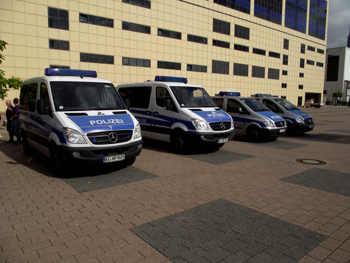 Zwei MB Sprinter und zwei MB Vito der Polizei stehen am 21.09.13 auf der IAA