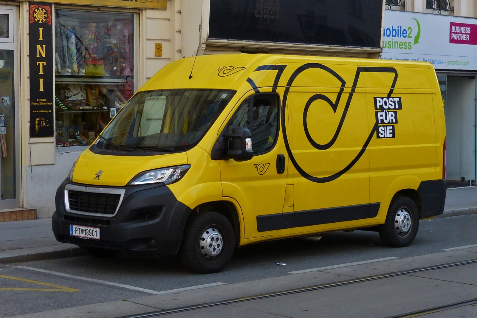 Peugeot Boxer der Österreichischen Post gesehen in Wien am Straßenrand. 06.2023