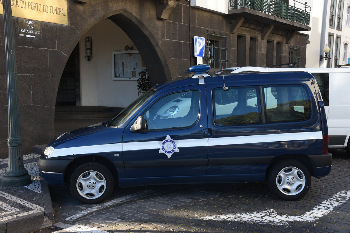 Peugeot-Kastenwagen als Fahrzeug der Polícia Marítima vor der Wache am Largo dos Varadouros (Funchal/Portugal, 21.01.2018)
