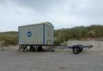 Piaggio Ape mit Kastenaufbau hellblau mit Werbeschild Amrum Appartment Centrum am 14.05.2015