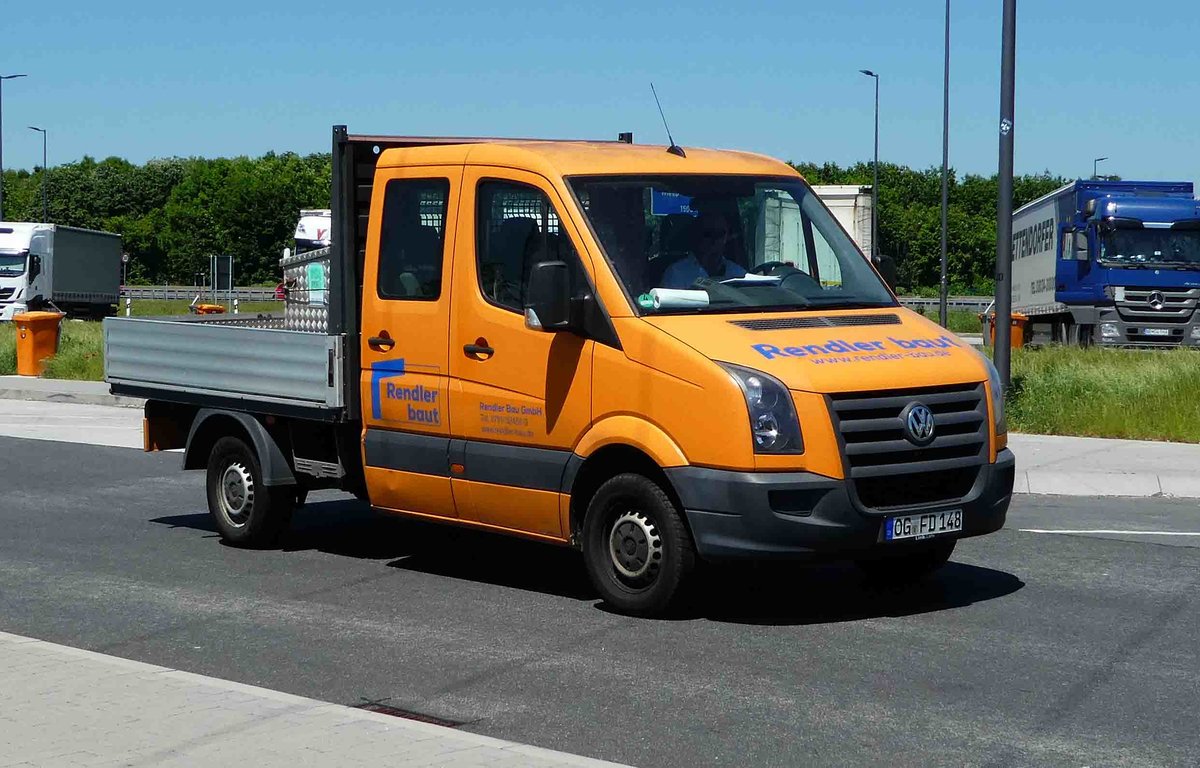 =VW Crafter verlässt einen Rastplatz an der A 3, Mai 2017