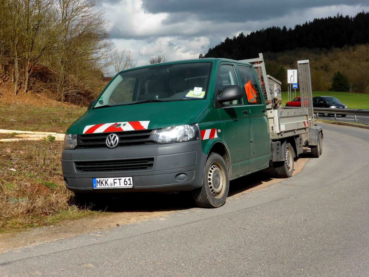 VW T5 eines Landschaftsbauers steht in der Gemarkung von 36100 Petersberg-Marbach anl. einer Pflanzaktion an der Midal-Gasleitungstrasse, April 2015