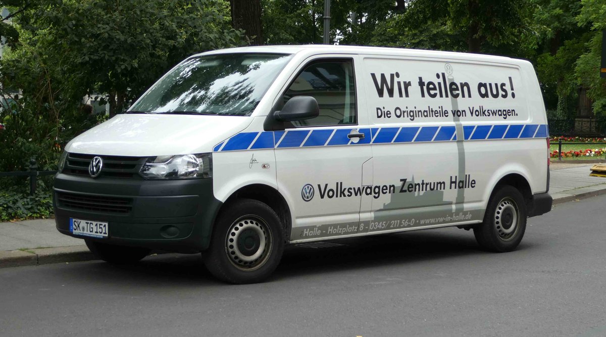 =VW T5 vom "Volkswagen-Zentrum Halle" steht im Juli 2016 in Leipzig