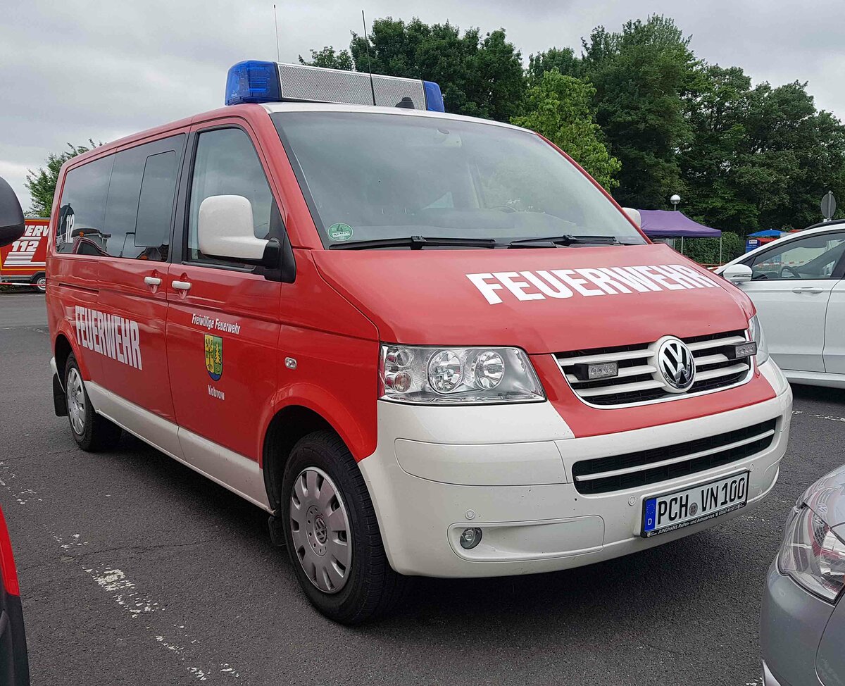 =VW T5 der Feuerwehr KOBROW steht anl. vom Internationalen Jugendfeuerwehr-Wettbewerb 2022 in 36100 Petersberg, Mai 2022