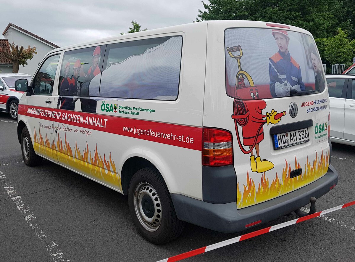 =VW T5 als MTW der Jugendfeuerwehr SACHSEN-ANHALT steht anl. vom Internationalen Jugendfeuerwehr-Wettbewerb 2022 in 36100 Petersberg, Mai 2022