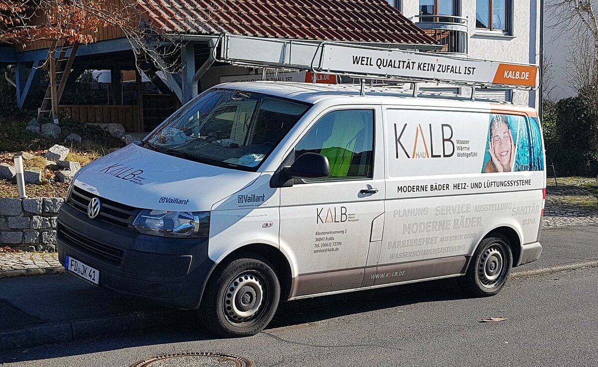 =VW T5 des Sanitärbetriebes KALB steht im Februar 2023 in Petersberg