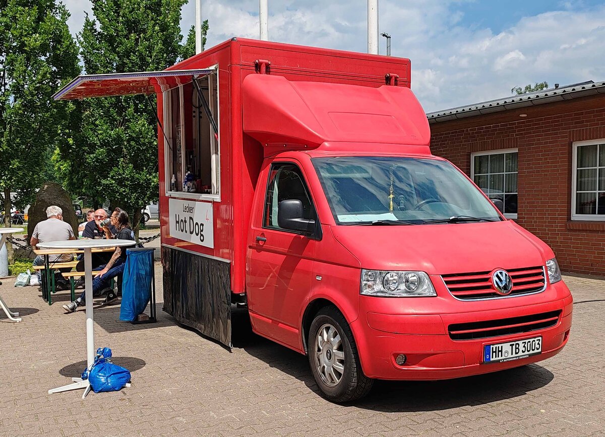 =VW T5 als Verkaufsstand für Hot Dogs, Juni 2024