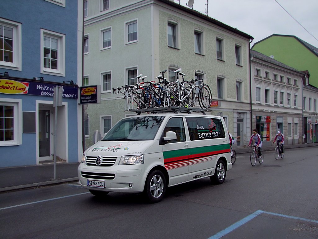 VW-T5 vom Radclub-Tirol trifft zum Rieder Radrennen in der Oberösterreichischen Bezirksstadt ein;100530