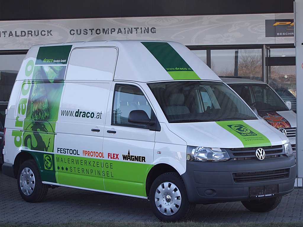 VW-T5 steht am Abholplatz des Beschriftungszentum in Ried;110226
