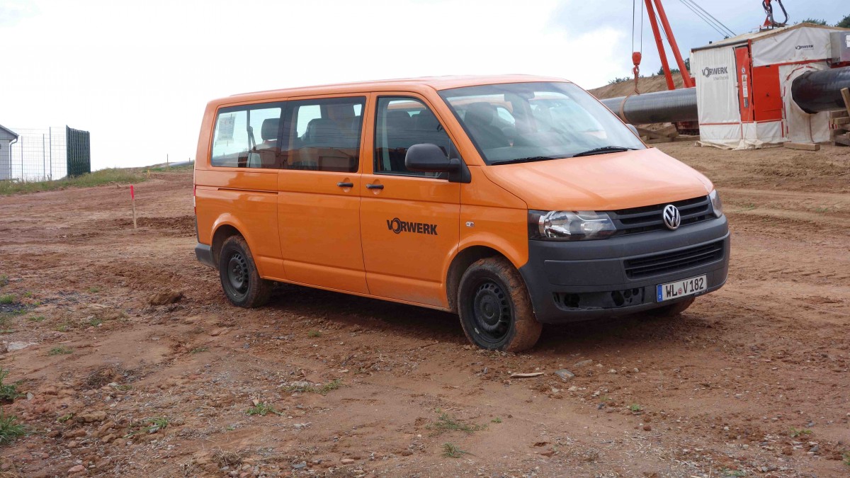 VW T5 der Firma "VORWERK" steht an der Baustelle der MIDAL-Gasleitung in 36100 Petersberg-Marbach, August 2013