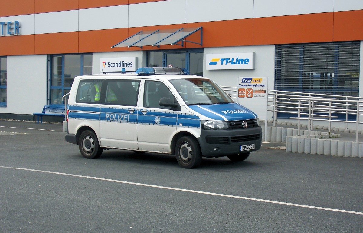 Einsatzfahrzeug der Bundespolizei im Oktober 2013 im Fährhafen Rostock auf Basis VW T5.