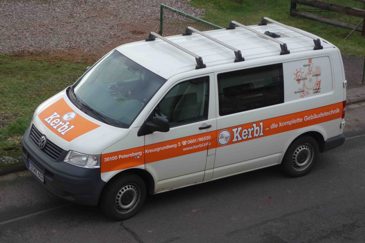 VW T5 der Firma "Kerbl", gesehen im 36100 Petersberg-Marbach, Januar 2014