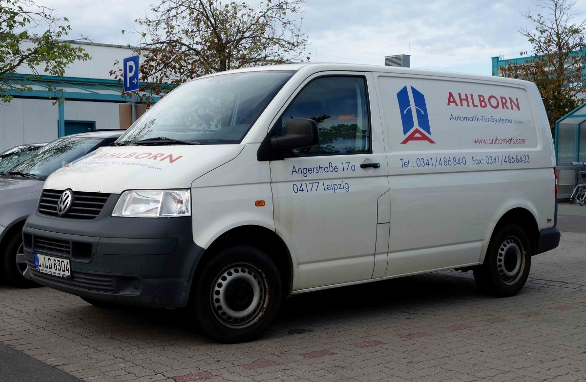 VW T5 der Firma "AHLBORN", gesehen in Schwerin im August 2014