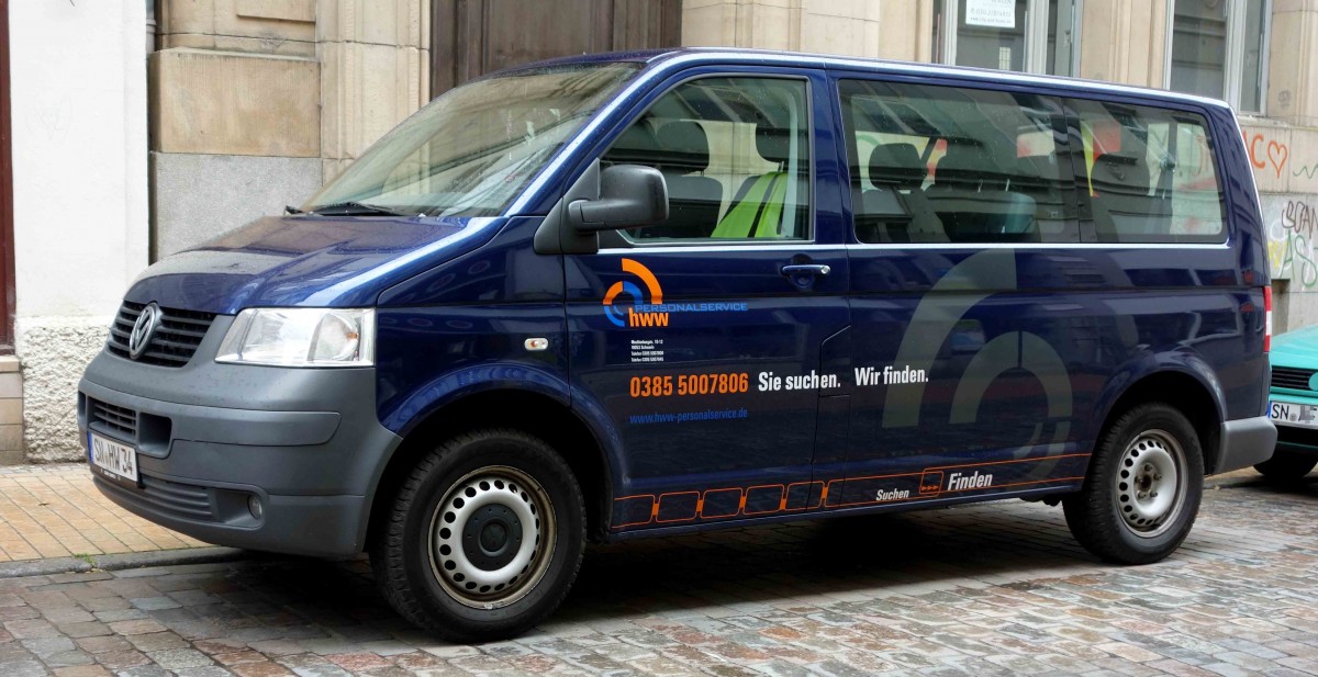 VW T5 von "hww Personalservice" steht im August 2014 in Schwerin