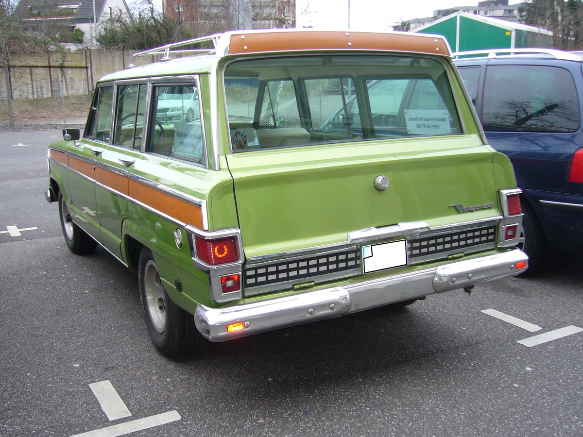 Heckansicht eines Jeep Grand Wagoneer. 1961 - 1978. Besucherparkplatz der Düsseldorfer Classic Remise am 26.02.2017.