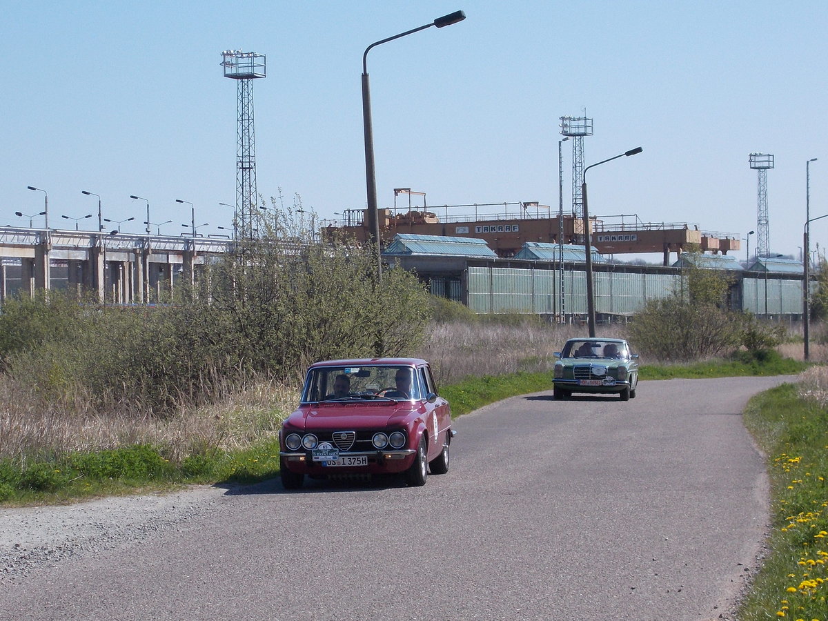Teilnehmer der 15.Rügenclassic,am 06.Mai 2016,ein Alfa Romeo Guilia Nova Super und ein Mercedes auf der Südstraße in Mukran.