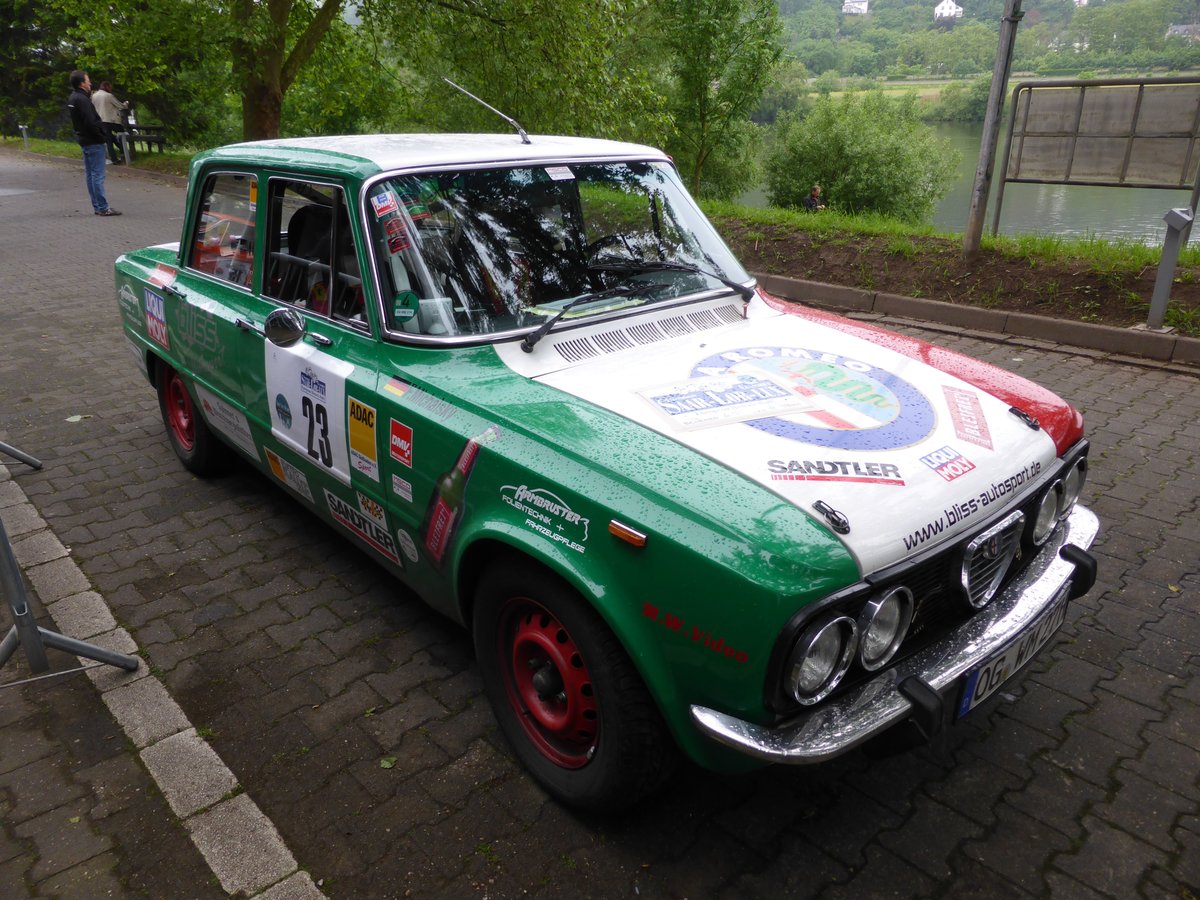Alfa Romeo Giulia Rallye (Baujahr 1978) bei der Internationalen Saar-Lor-Lux Classique. Start zum zweiten Tag am 28.05.2016 in Trier.