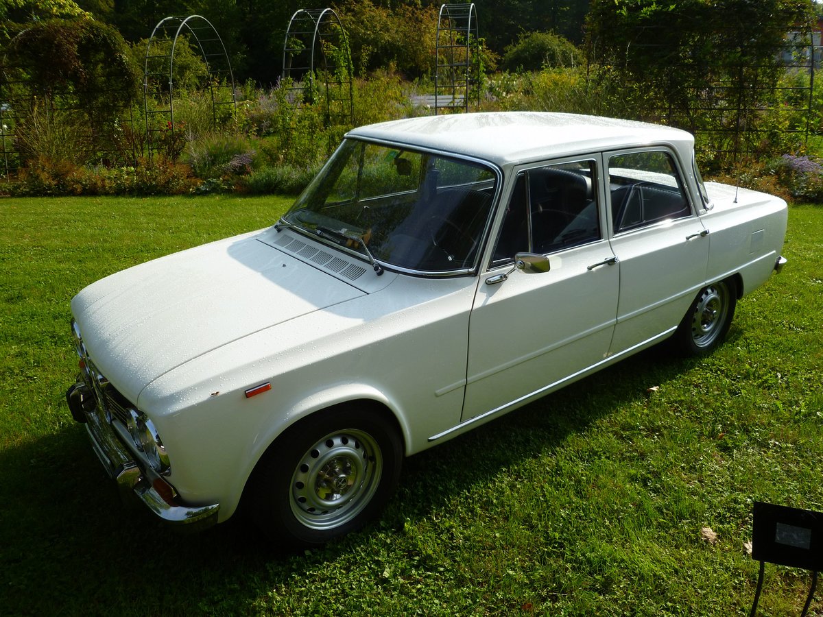 Alfa Romeo Giulia 1300 ti, gebaut in den Jahren von 1966 bis 1972. Mit der viertürigen Giulia hatte Alfa Romeo ab 1962 einen Verkaufsschlager gelandet. Es gab zum Verkaufsstart zwei Motorisierungen mit 1.3l und 1.6l Hubraum. Mit dem 1300 ti brachten die Marke aus Milano ein sportliches Modell für die weniger betuchten Kunden auf den Markt. Der Vierzylinderreihenmotor mit doppelter Nockenwelle hat einen Hubraum von 1290 cm³ und leistet 82 PS. Oldtimer-Revival auf dem Gelände der Kokerei Zollverein in Essen am 10.08.2025.