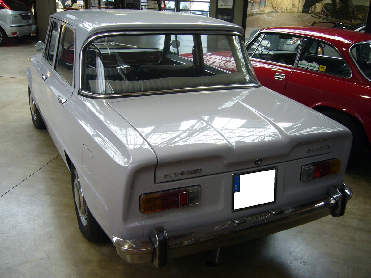 Heckansicht einer Alfa Romeo Giulia 1300 ti. Classic Remise Düsseldorf am 23.11.2021.