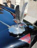 =Kühlerfigur des Alvis 12/70, Bj. 1939, 1848 ccm, 100 PS, gesehen bei der Präsentation der Rennteilnehmer des Rossbergrennens "Edelweiss-Bergpreis" 2022 im Markt Berchtesgaden.