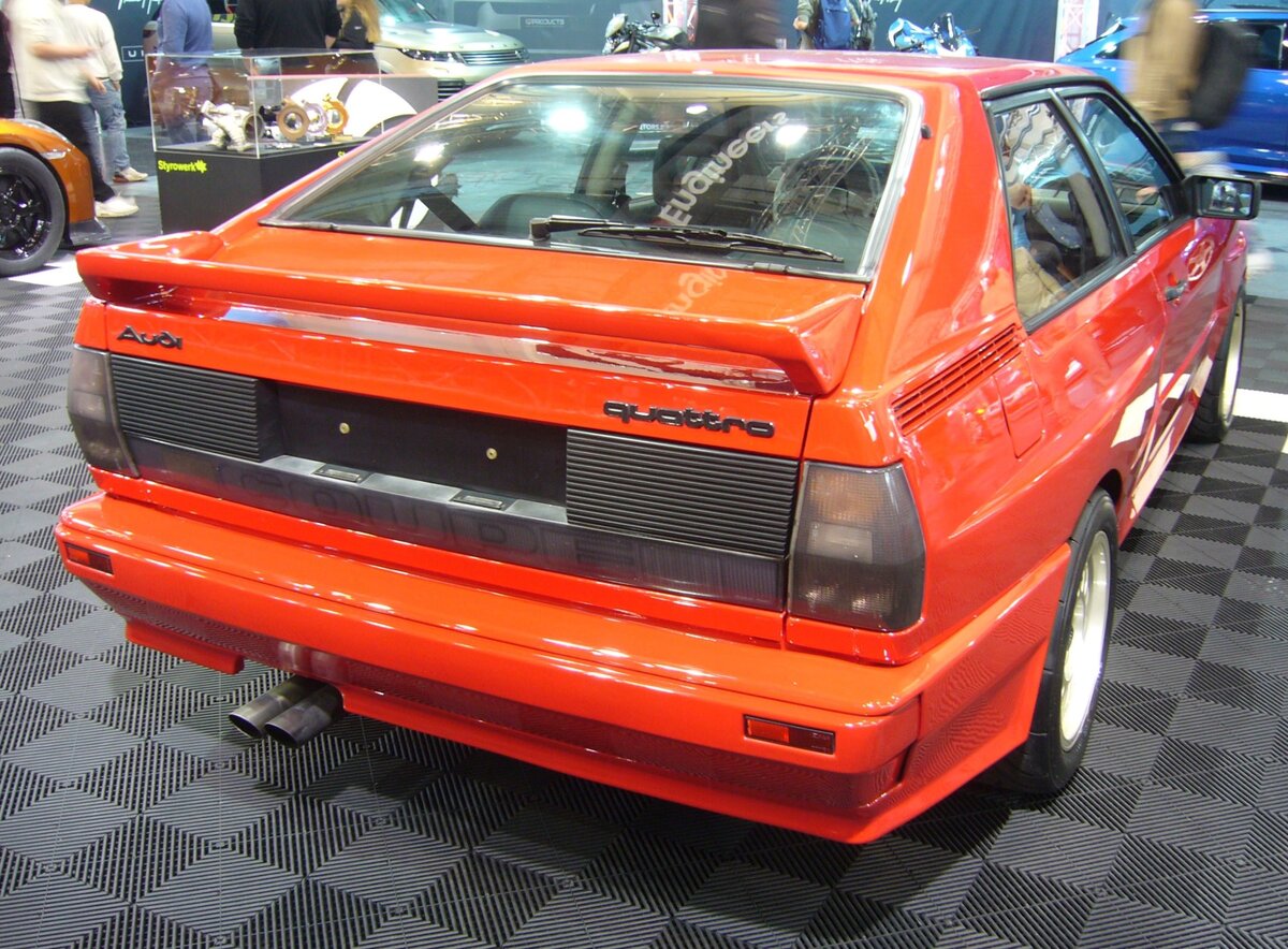 Audi Quattro Sport Coupe, wie es von 1987 bis 1991 produziert wurde. Um ein solch innovatives und sportliches Coupe zu fahren, musste man im Jahr 1987 mindestens DM 81520,00 auf die Theke des Audi-Händlers legen. Unter der Haube verrichtet ein Fünfzylinderreihenmotor seinen Dienst, der aus einem Hubraum von 2226 cm³ genau 200 PS leistet. Die Motorkraft wird mittels eines permanenten Allradantriebes an die Räder weiter gegeben. Die Höchstgeschwindigkeit gab man in Ingolstadt mit 222 km/h an. Essen Motor Show am 28.11.2025. Michael H.