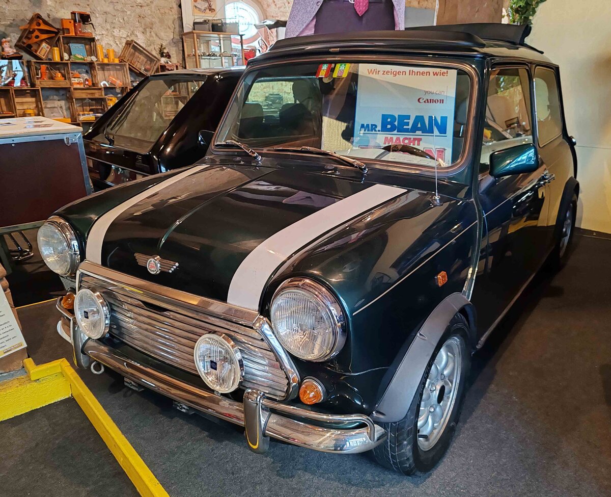 =Austin Mini, Baujahr 1996, 1275 ccm, 63 PS, gesehen im Automuseum Wolfegg im Dezember 2023