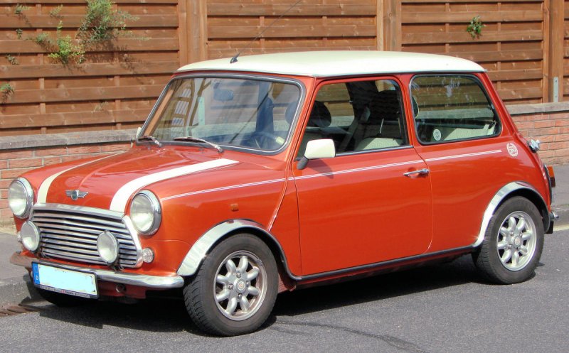 Austin Mini aus dem Jahr 1963 im Farbton powder blue. Bekanntlich wurde der Mini 1959 vorgestellt. Der Kleinwagen wurde im Rahmen des britischen badge engineering auch von anderen britischen Marken hergestellt. Die frühen Mini´s erkennt man an den seitlichen Schiebefenstern und den außenliegenden Türscharnieren. Der quer eingebaute Vierzylinderreihenmotor dieses Kleinwagens hat einen Hubraum von 848 cm³ und leistet 34 PS. Da das "Wägelchen" nur 620 Kilogramm wiegt, erreicht er mit dieser Motorleistung trotzdem eine Höchstgeschwindigkeit von rund 120 km/h. In Deutschland war ein solches Modell im Jahr 1965 ab DM 4670,00 zu bekommen. Classic car meeting in Brynmawr/South Wales am 27.07.2025.