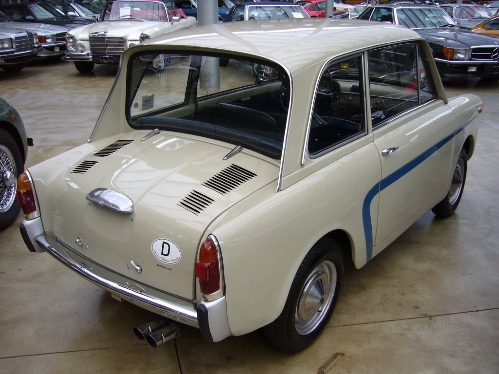 Autobianchi Bianchina Limousine. 1962 - 1969. Die Bianchina war bereits 1957 als Coupe auf den Markt gekommen. Die Motorisierung war kongruent mit dem Fiat 500. Insbesondere die Damenwelt hatte gefallen an diesem schicken Kleinwagen mit Pontonkarosserie. Bis zu seinem Import nach Deutschland war der Wagen in der westsizilianischen Provinz Trapani zugelassen. Classic Remise Düsseldorf am 15.09.2012.