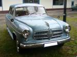 Borgward Isabella Limousine, gebaut in Bremen-Sebaldsbrück in den Jahren von 1954 bis 1961. Bis 1957 hatte das technisch hervorragend konzipierte Auto mit  Kinderkrankheiten  zu kämpfen. Die gezeigte Isabella wurde 1959 erstmalig in Schweden zugelassen. Äußerlich am kleineren Rhombus am Kühlergrill zu erkennen, der ab dem Modelljahr 1958 verbaut wurde. Der Vierzylinderreihenmotor leistet 55 PS aus einem Hubraum von 1493 cm³. Außengelände der Techno Classica Essen am 12.04.2025.