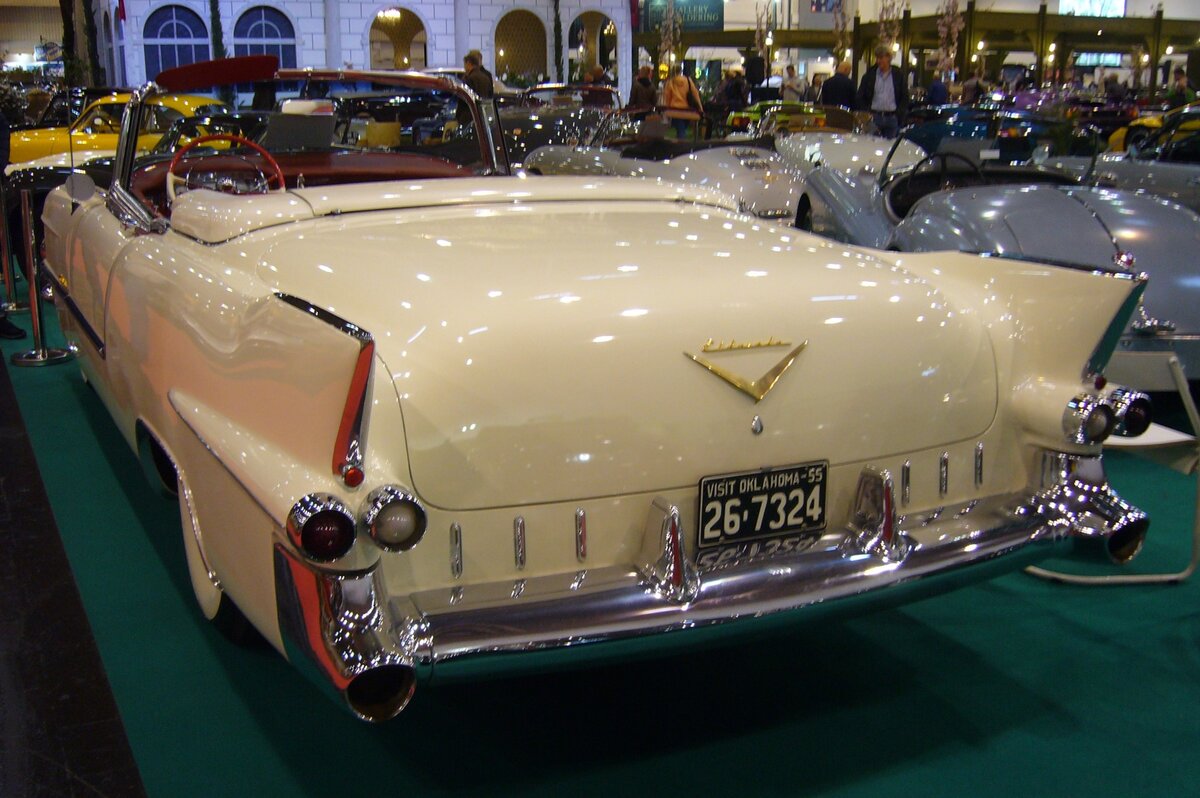 Heckansicht eines Cadillac Series 62 Eldorado Special Sport Convertible Coupe aus dem Jahr 1955. Techno Classica Essen am 06.04.2024.