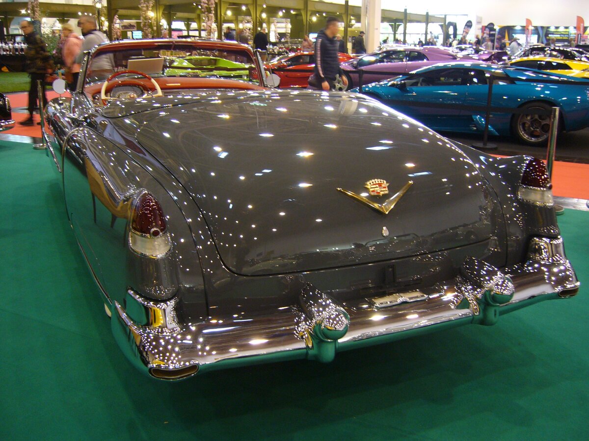 Heckansicht eines Cadillac Series 62 Eldorado Special Sport Convertible Coupe aus dem Jahr 1953. Das hier gezeigte Cabriolet war im Modelljahr 1953 das absolut teuerste Modell von Cadillac. Während das "normale" Series 62 Convertible Coupe sich zu einem Grundpreis von US$ 4144,00 genau 8367 mal verkaufte, kostete ein solches Series 62 Eldorado Special Sport Convertible Coupe mindestens US$ 7750,00. Dementsprechend wurden in diesem Modelljahr auch nur 532 Fahrzeuge dieses Typs abgesetzt. Der V8-Motor hat einen Hubraum von 5222 cm³ mit einer Leistung von 210 PS. Techno Classica Essen am 05.04.2024.