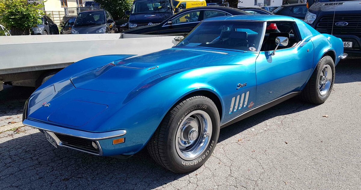 =Chevrolet Corvette C 3, Bj. 1969, 6997 ccm, 390 PS, gesehen bei der Fahrzeugabnahme anl. des Rossfeldrennens "Edelweiss-Bergpreis" 2022 im Markt Berchtesgaden.