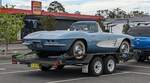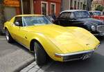 Chevrolet Corvette Stingray Coupe aus dem Jahr 1969. Ab 1967 stand die "neue" Corvette C3 mit ihrem markanten Coke-Bottle Design bei den Chevrolet-Dealern. Erkenntlich sind die frühen Modelle bis zum Modelljahr 1973 an den vorderen und hinteren Chromstoßfängern. Die gezeigte C3 dürfte im Farbton polarwhite lackiert sein. Ein weiteres, äußerliches, Erkennungszeichen ist das so genannte T-Top. Dabei handelt es sich um zwei herausnehmbare Dachhälften, ähnlich dem des Targa-Systems. Der Käufer konnte zwischen zwei V8-Motorisierungen wählen: 5728 cm³ mit 213 PS oder 253 PS. Oldtimertreffen an Mo´s Bikertreff in Krefeld am 10.03.2024.