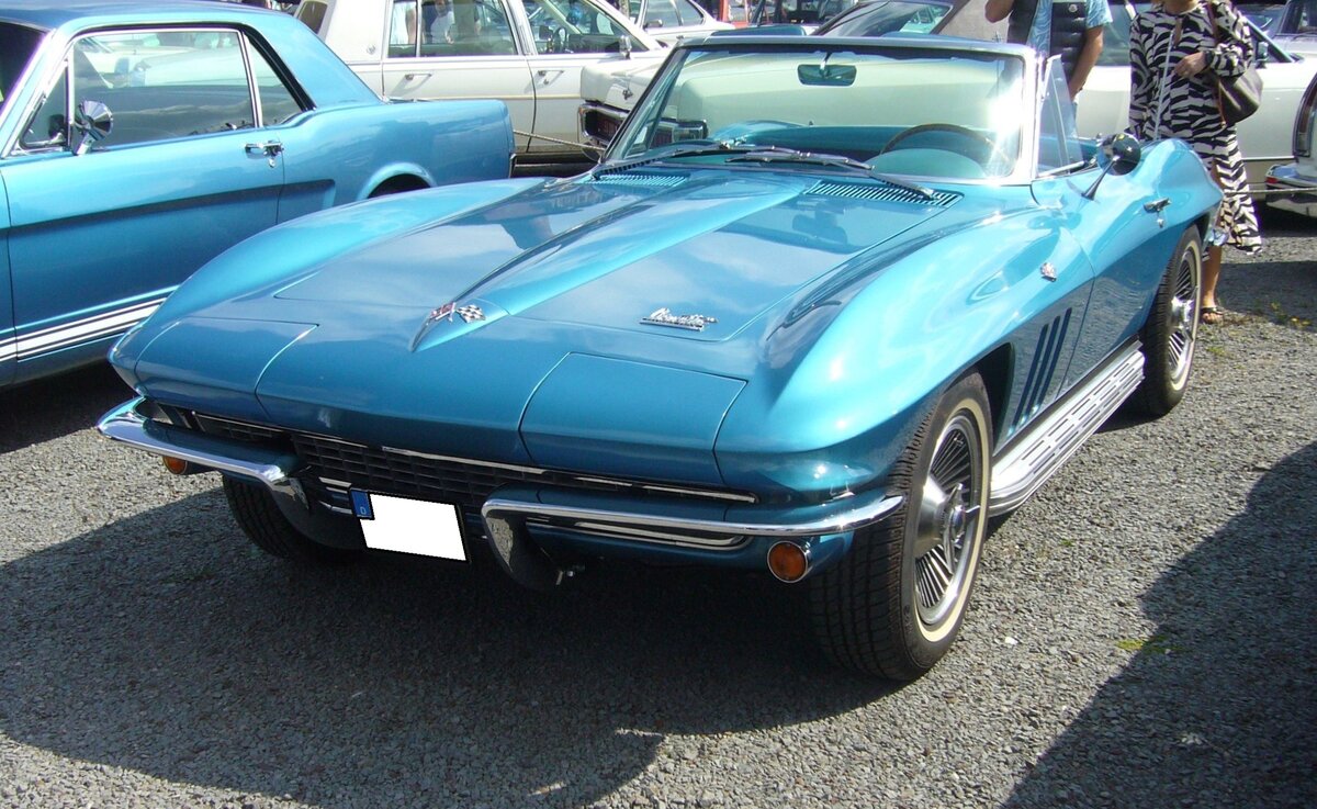 Chevrolet Corvette C2 Sting Ray Convertible des Modelljahres 1965. Diese, im Farbton nassau blue lackierte, Corvette C2 wird durch einen 6498 cm³ V8-Motor angetrieben der 365 PS leistet. Oldtimer-Revival auf dem Gelände der Kokerei Zollverein in Essen am 28.07.2024.