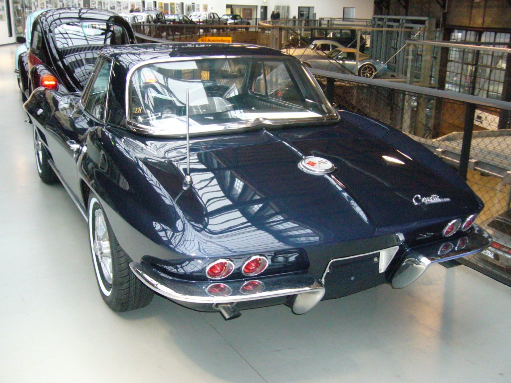 Heckansicht eines Chevrolet Corvette C2 Sting Ray Convertible (1963) mit Hardtopdach. Classic Remise Düsseldorf am 05.01.2013.