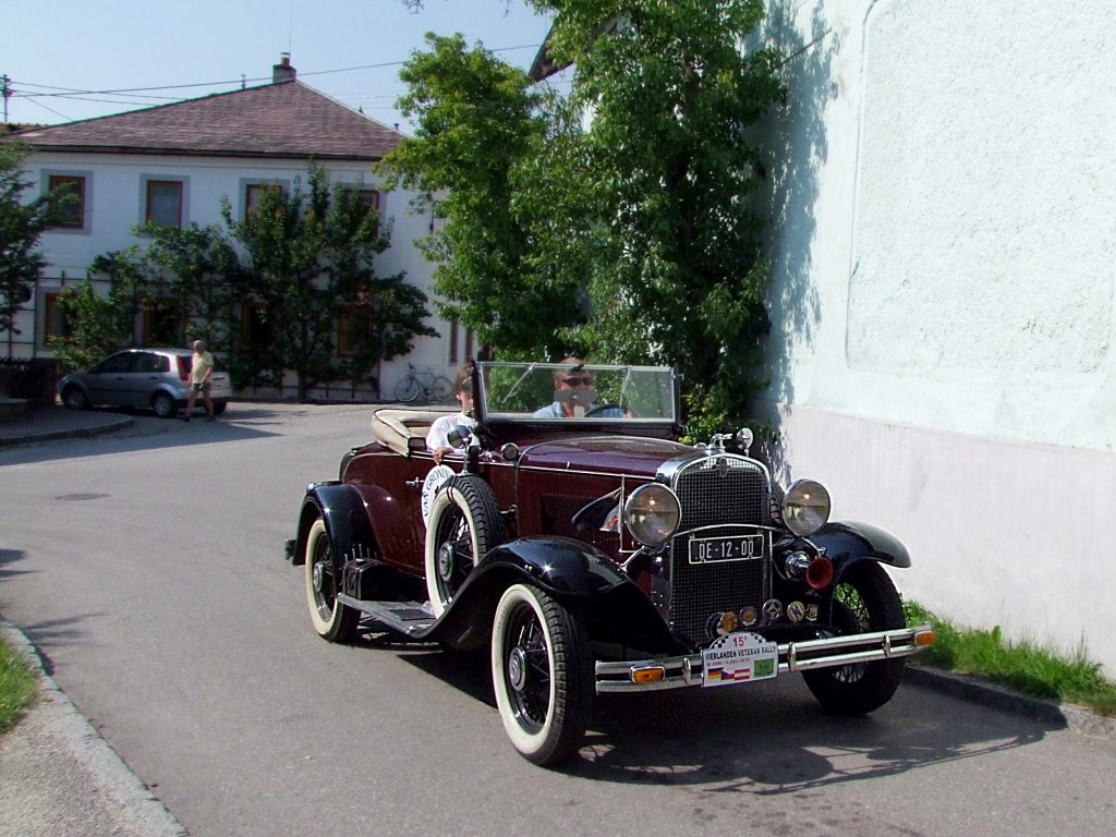 Chevrolet-1931,IndependenceSportRoadster nimmt an der "15te-Vierlanden-Veteran-Rally-2010" teil, und erreicht soeben das Etappenziel Waldzell;100629