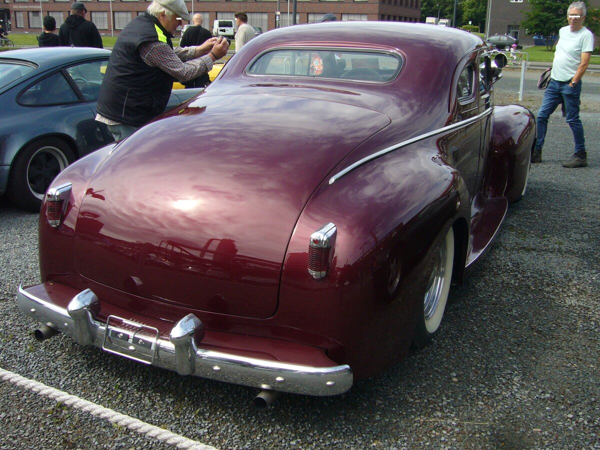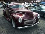 Chrysler Series 28-Six Royal Coupe aus dem Jahr 1941. Die Fahrzeuge für das Modelljahr 1941 stellte Chrysler im August 1940 vor. Im Juli 1941 wurde die Produktion kriegsbedingt schon wieder eingestellt. Es wurden drei Modellreihen angeboten: Series 28-Six, 30-Eight und als Topmodell C33-Eight. Somit ist das gezeigte Coupe im Farbton Newport blue ein Business-Coupe in Basisausstattung. Der Sechszylinderreihenmotor hat serienmäßig einen Hubraum von 241,5 cui (3957 cm³) und leistet 112 PS. Altmetall trifft Altmetall im LaPaDu am 02.10.2022.