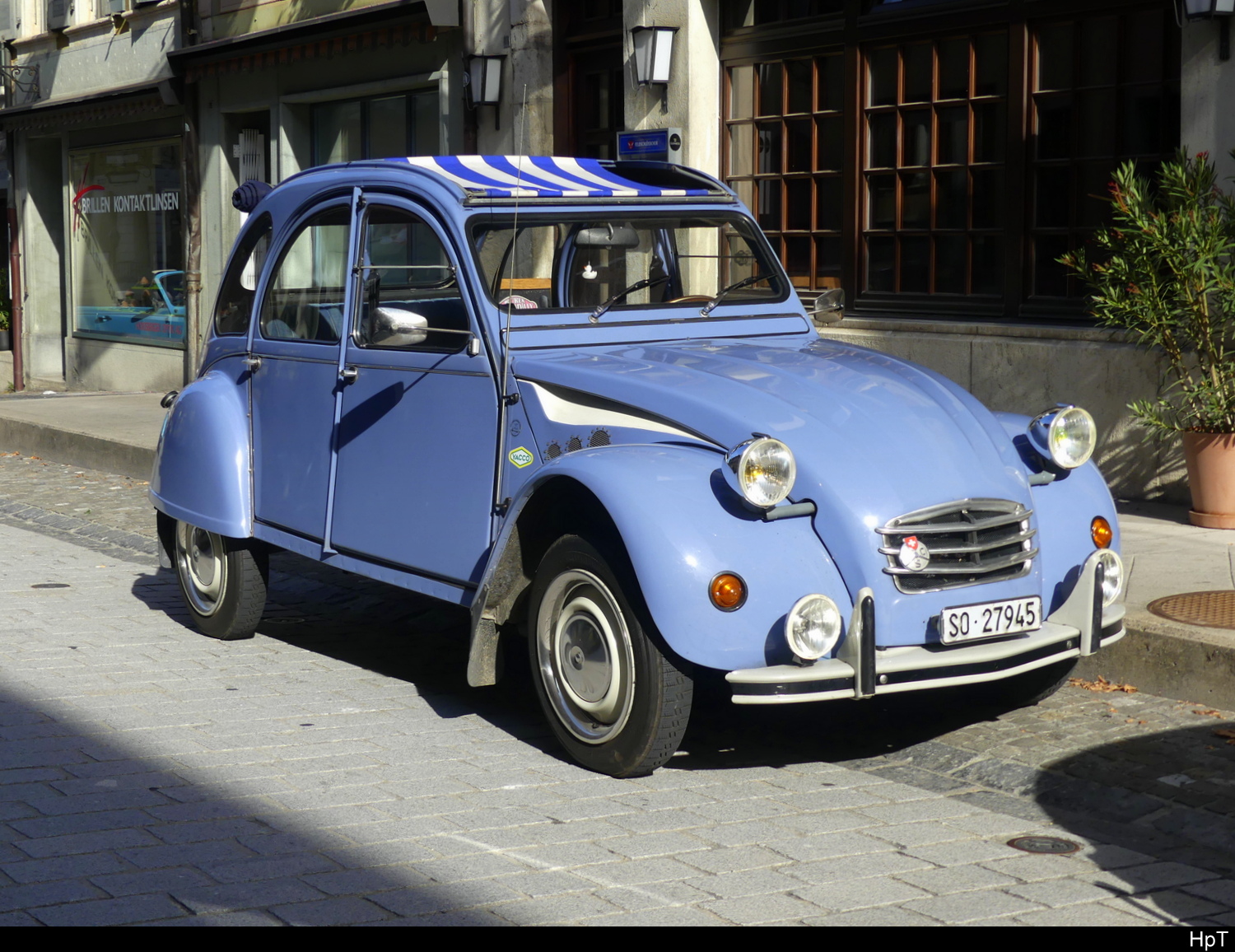 Blauer Citroen 2 CV zu Besuch in Büren an der Aare am Oldtimertreffen am 07.09.2025