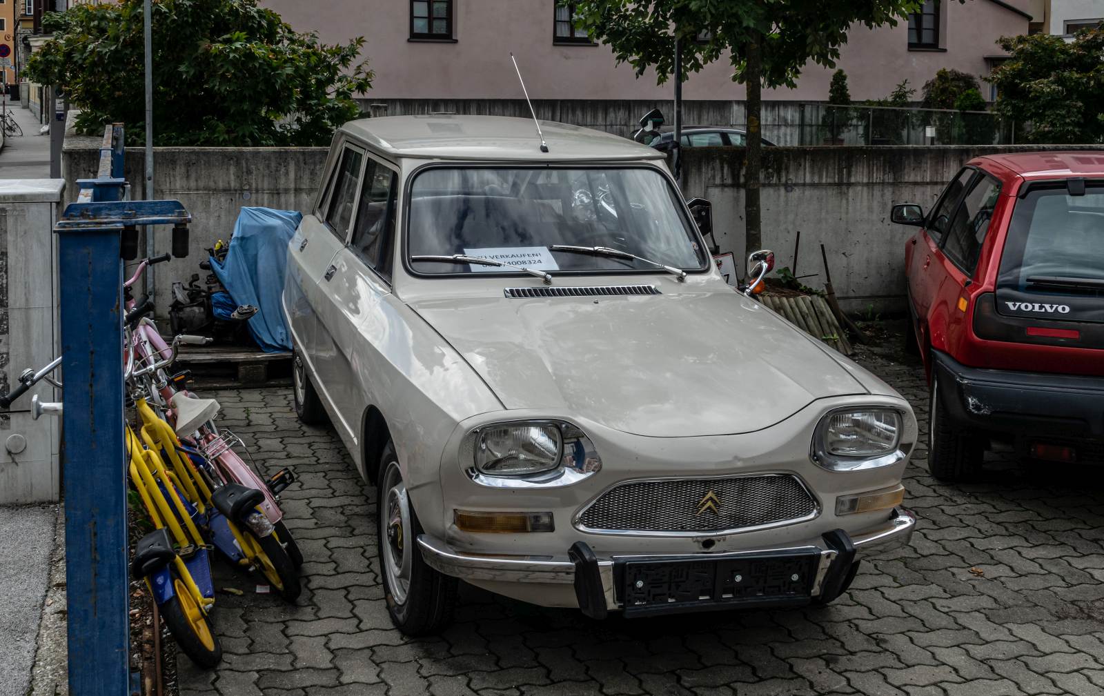 Diesen Citroen Ami 6 habe ich in Juli, 2022 vor einer Reparaturwerkstatt in Innsbruck fotografiert.