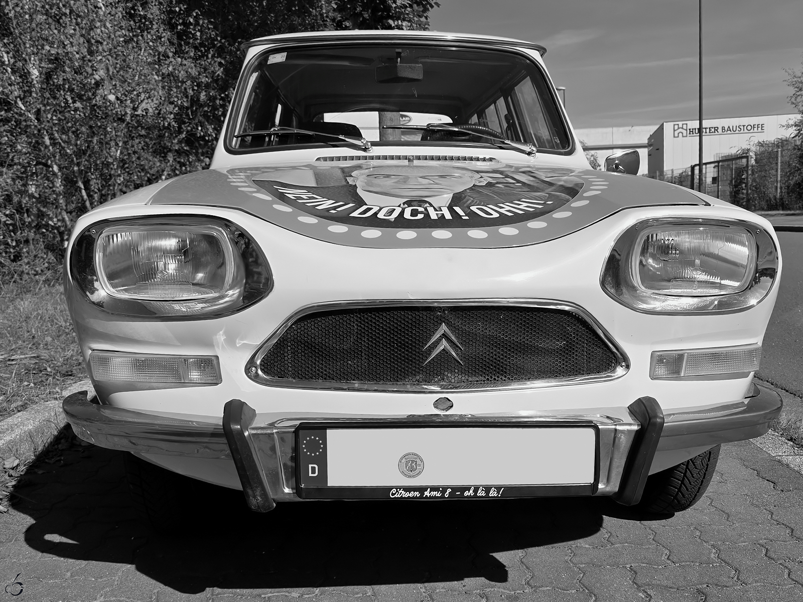 Im Bild ein Citroën Ami 8 in der Frontalansicht. (Hattingen, September 2025)