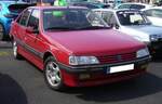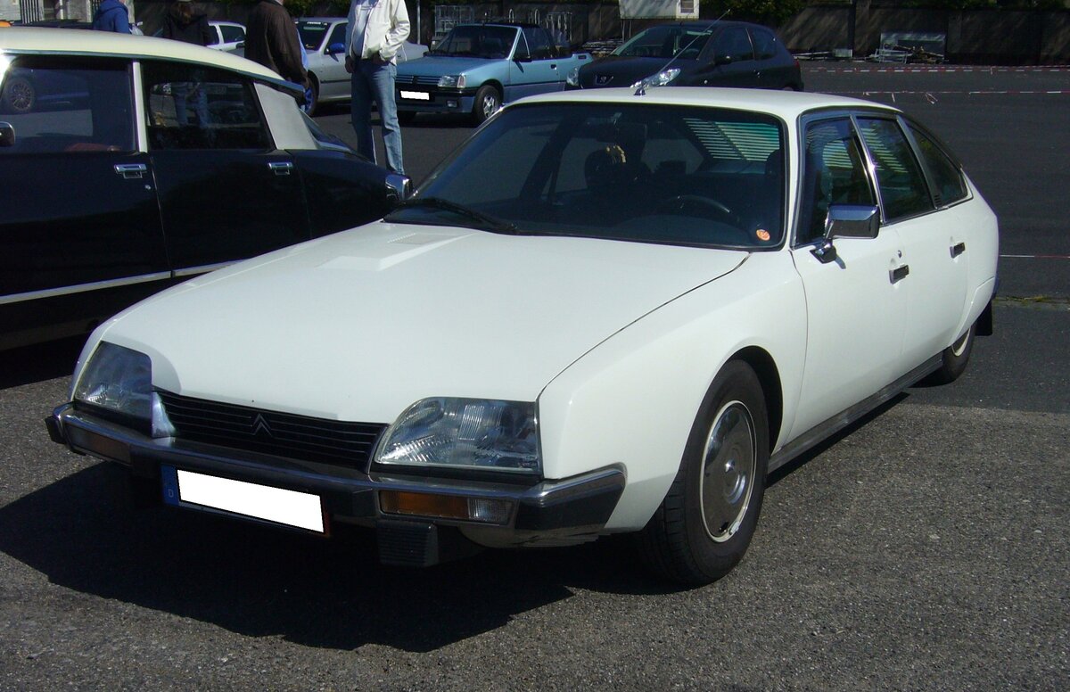 Citroen CX D Pallas der ersten Serie. Die futuristisch gezeichnete Modellreihe CX kam 1974 auf den Markt und wurde mit einigen Facelifts bis 1991 produziert. Die Modellbezeichnung "Pallas" weist auf ein Modell mit luxuriöser Innenausstattung hin. Der Vierzylinderdieselreihenmotor dieses CX hat einen Hubraum von 2175 cm³ und leistet 66 PS. Die Höchstgeschwindigkeit wurde mit 146 km/h angegeben. French Car Devotion am 30.04.2023 an Mo´s Bikertreff in Krefeld.