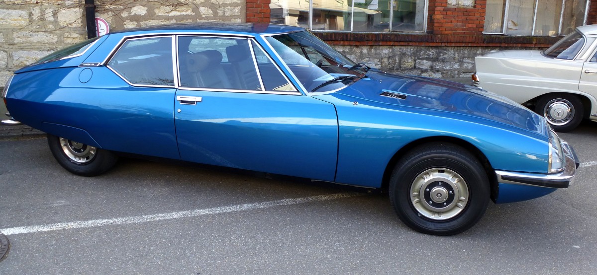 Citroen SM, Baujahr 1974, mit Maserati-V6-Motor mit 2670ccm und 180PS, Vmax.228Km/h, Oldierama Lörrach, März 2015