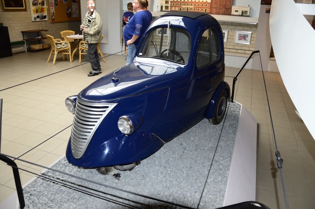 Es handelt sich um einen Prototyp, den Huub van Doorne aus Eindhoven in den Jahren 1941/1942 konstruierte. Angetrieben wir das Minimal-Auto von einem Einzylindermotor mit 125 cm³. Angeblich soll die Höchstgeschwindigkeit 55 km/h betragen haben. DAF-Museum Eindhoven am 05.01.2018.